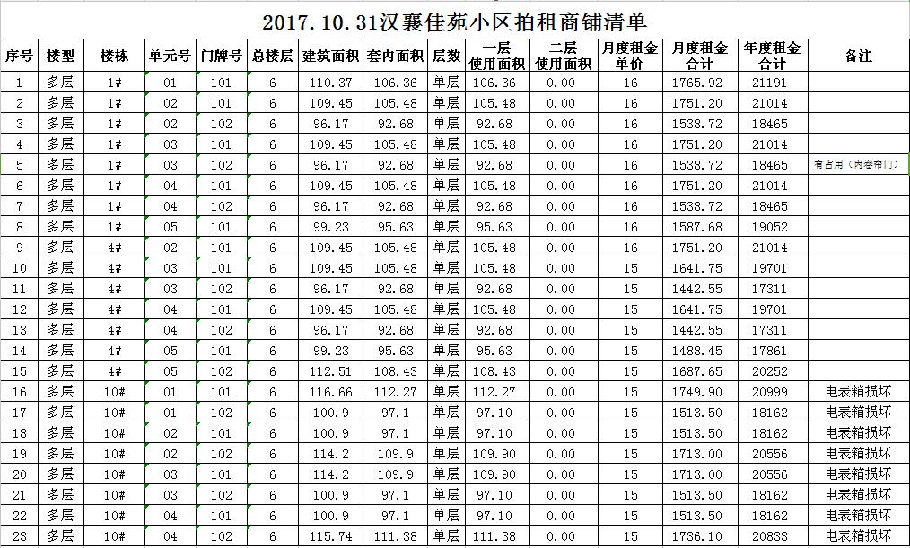 拍租門面房共有數(shù)十套,均為空房,房屋面積分別為數(shù)十至數(shù)百平方米不等。租賃期限均為3年。