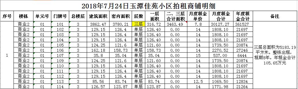 拍租門面房共有數(shù)十套,均為空房,房屋面積分別為數(shù)十至數(shù)百平方米不等。租賃期限均為3年。