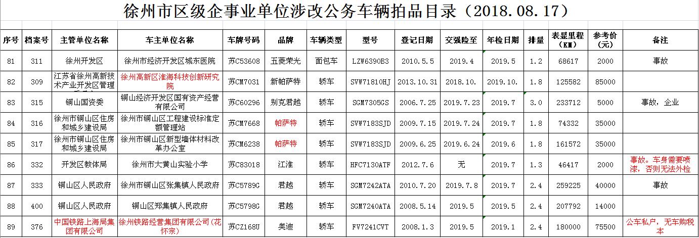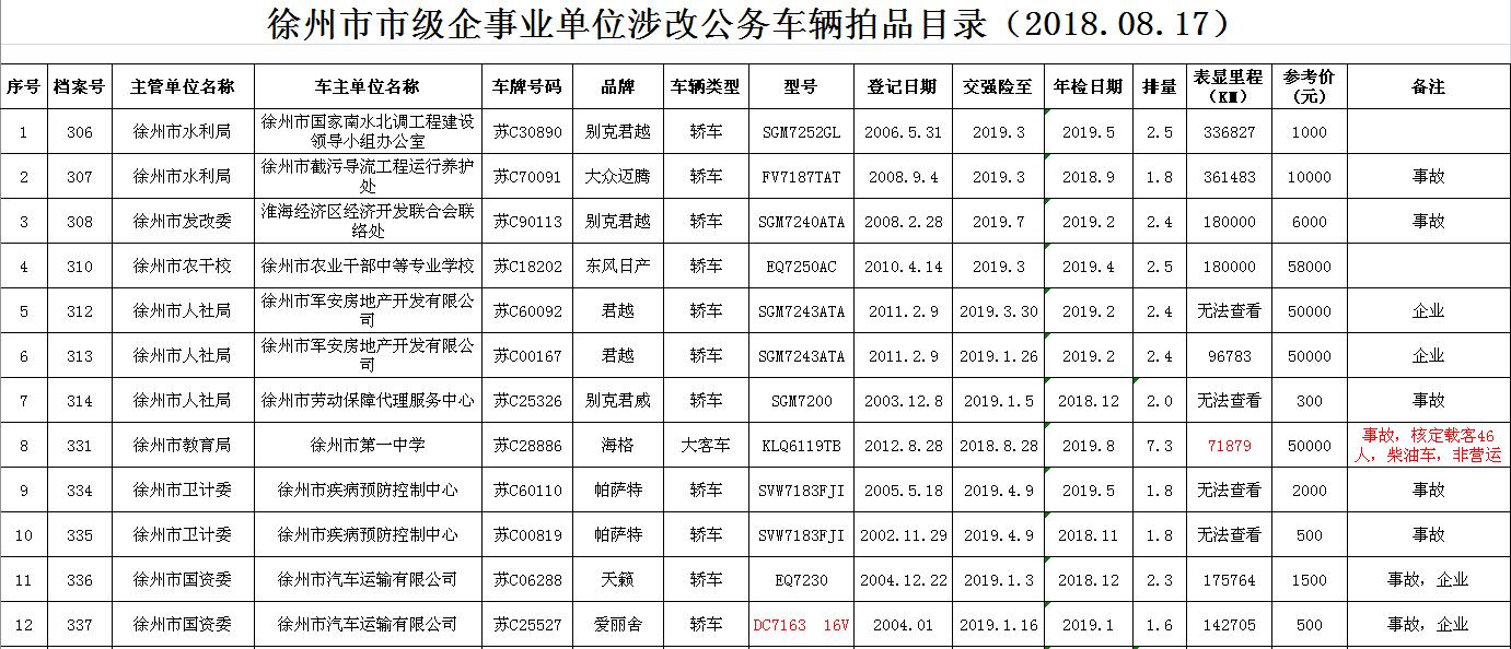 一、拍賣標的:徐州市企事業(yè)單位改革公務車輛(詳見每期拍品目錄)。
