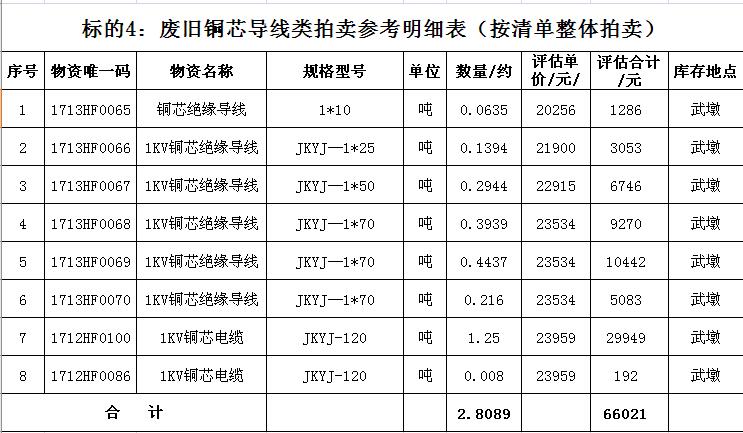關(guān)注微信公眾號(hào)受淮安宏能集團(tuán)有限公司委托,我公司將通過中國拍賣行業(yè)協(xié)會(huì)網(wǎng)絡(luò)拍賣平臺(tái)以網(wǎng)絡(luò)競(jìng)價(jià)的方式公開拍賣以下廢舊物資,主要包括:高壓銅芯電纜、控制電纜、銅芯導(dǎo)線、鋁芯電纜、角鋼塔、鋼管塔等。