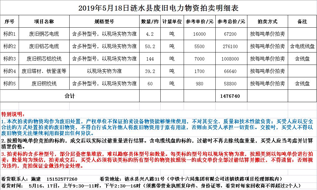 關(guān)注微信公眾號(hào)受委托,我公司將通過中國拍賣行業(yè)協(xié)會(huì)網(wǎng)絡(luò)拍賣平臺(tái)以網(wǎng)絡(luò)競價(jià)的方式公開拍賣以下廢舊電力物資,主要包括:銅芯電纜、鋁芯電纜、鋼芯鋁絞線、鋼絞線、角鋼塔等。