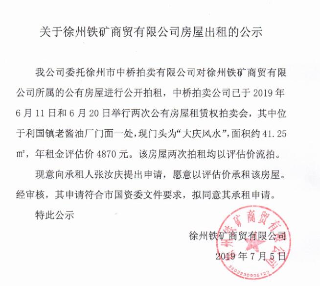 上一條:關于徐州鐵礦商貿(mào)有限公司房屋出租的公示