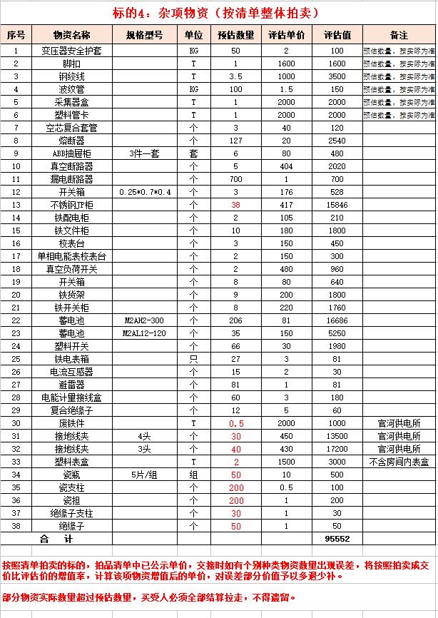 1、連云港怡能電力建設工程有限公司廢舊物資。主要包含:廢舊鋁芯電纜、金具、電纜盤、雜項物資等。(保證金10萬元)