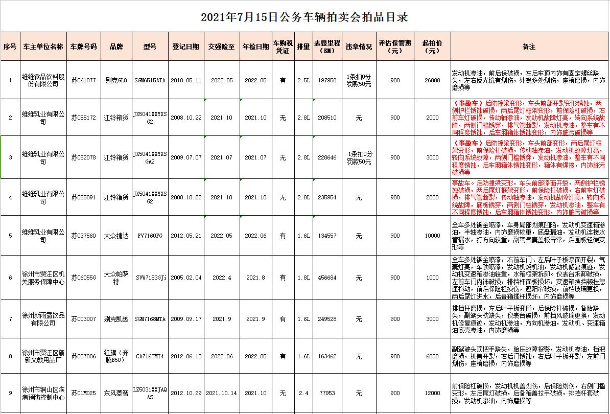 關注微信公眾號受委托,我公司定于2021年7月15日10時在中拍平臺通過網(wǎng)絡競拍方式公開拍賣以下公務車輛: