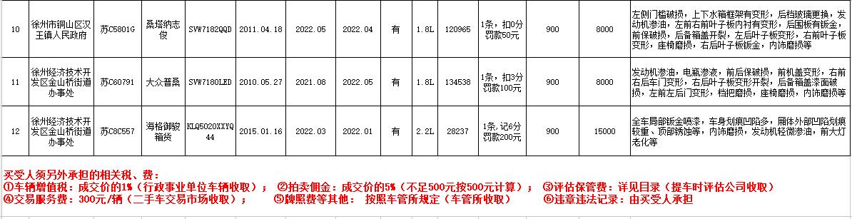 7月13日、14日在徐州銀地二手車交易市場展示。有意競買者請持有效證件到我公司辦理報名手續(xù),并交納每輛車1萬元保證金即可參拍,報名截止至7月14日16時。